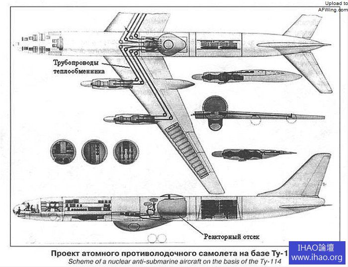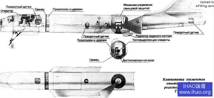 圖-95LAL 的發動機和反應堆配置圖,其中的管路是熱傳遞系統