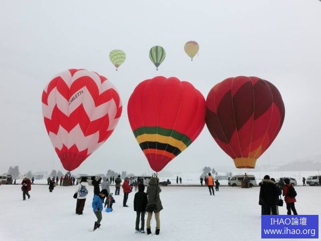 ▲皚皚白雪與繽紛彩色熱氣球相互映襯。