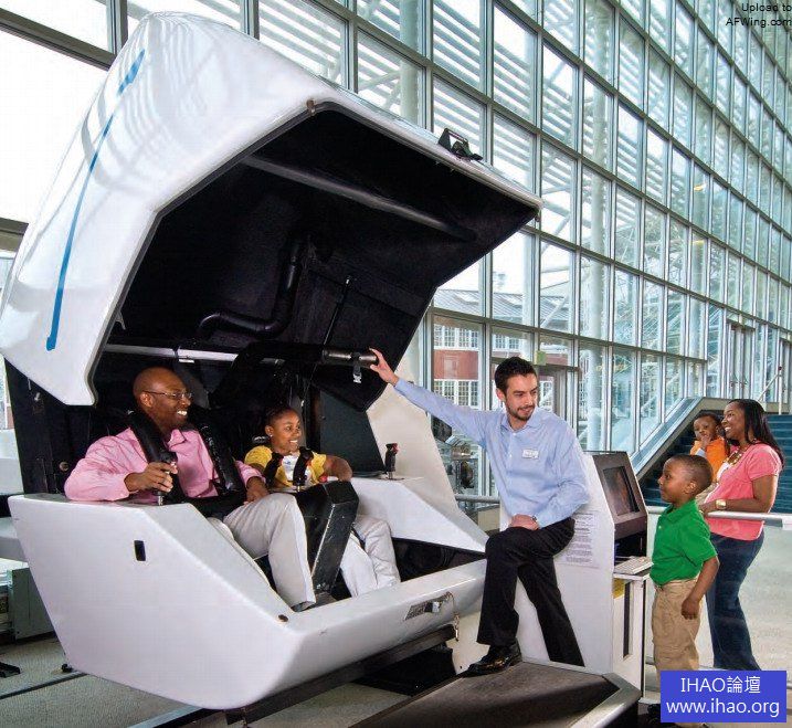 航空館裡的模擬器很受參觀者一家大小的歡迎