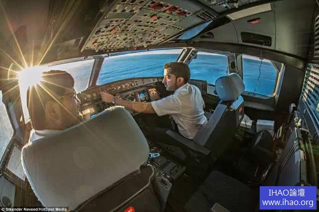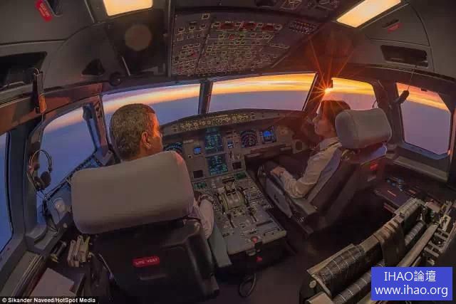 這是一組在3萬5千英尺高空的飛機駕駛艙中拍攝到的照片,窗口看出或是無邊黑夜,或是燦爛驕陽。