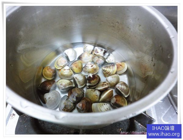 蛤仔放入鍋中加水~水不用很多~蓋過蛤仔即可。