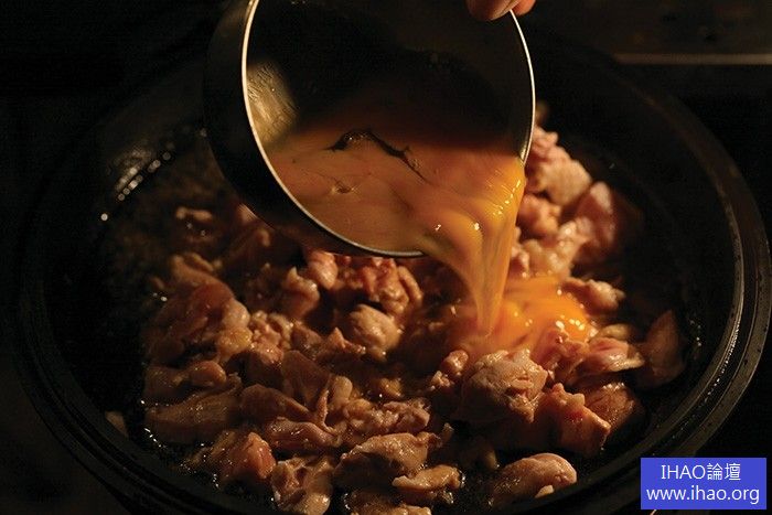 5. 不必悶太久,親子丼最主要口感來自半熟的滑蛋,所以雞蛋不要煮過熟,最後再放上蔥絲就可以了。