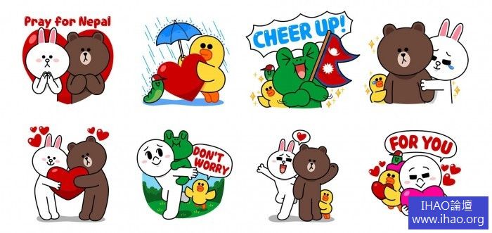 不少人應該已經從LINE裏面看到這組「為尼泊爾祈福(Pray for Nepal)」全球慈善貼圖,藉由購買此組貼圖,就可以幫助尼泊爾當地民眾。熊大、兔兔、饅頭人、莎莉、雷納德、愛德華都出現在其中,大家一起為尼泊爾打氣。