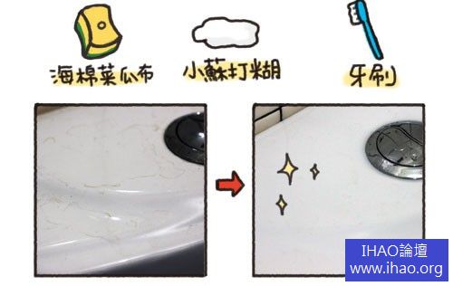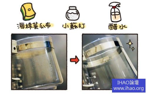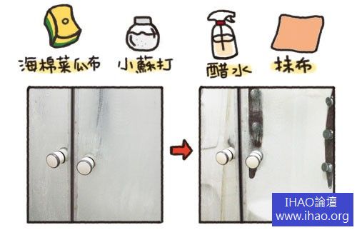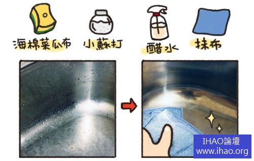 解決方法:準備海綿菜瓜布+小蘇打粉+醋水+抹布