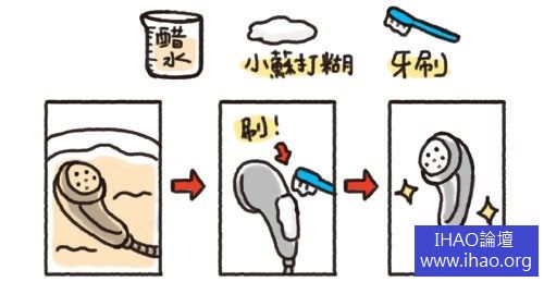 B.將小蘇打糊抹在蓮蓬頭上,再以牙刷清乾淨,沖水