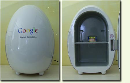 Google總是在強調的「cooler thinking」的同時,沒想到他們還真的出了兩款很cool的電冰箱,這款是流線蛋形的Google冰箱,分成上下兩層空間,還真是有趣有實用的Google產品呢!