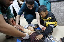 加薩夜晚,孩子們擁擠在庇護所中,夜晚的黑暗並不能掩蓋