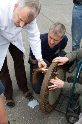 其實之前德國也發生過另一隻松鼠卡在人孔蓋的事情(德國的松鼠到底是...)