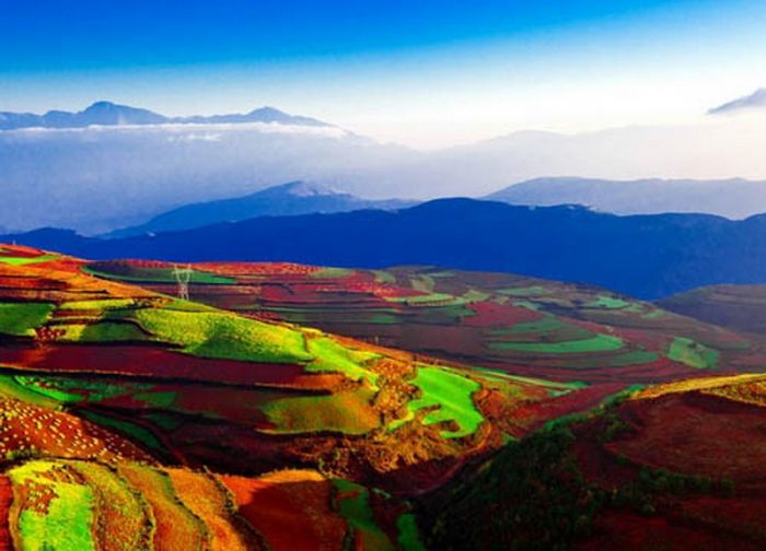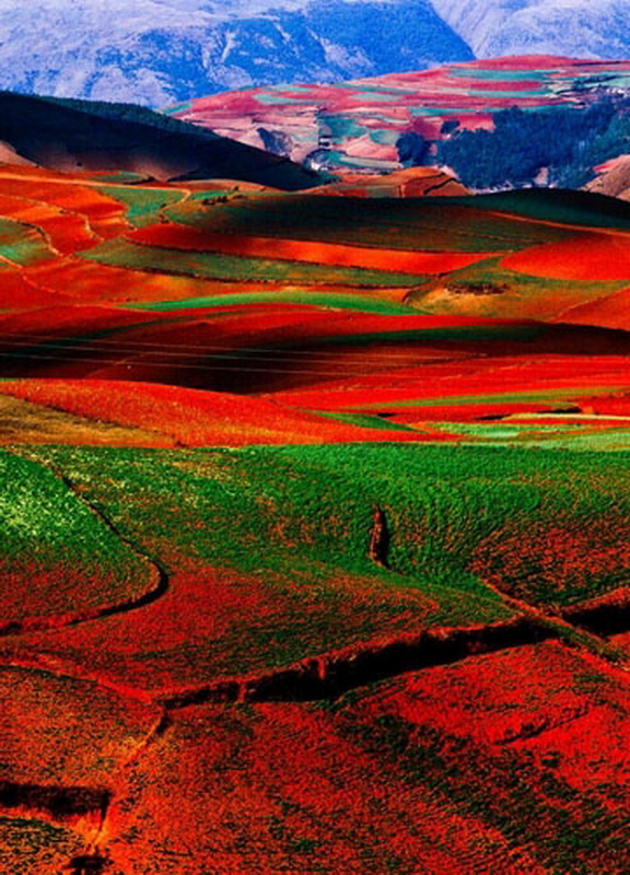 在沒有去過東川之前,從未想過天地間還有如此濃烈的色彩。極度豔麗而斑斕,雙眼似乎都被灼痛了。這麼美的地方,難道是墜落人間的彩虹所在嗎?
