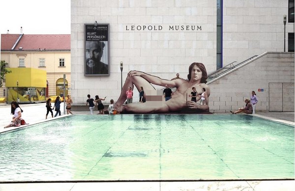 奧地利維也納的列奥波多博物館(Leopold museum)最近在展出《裸體男子》(Naked Men),顧名思義就是專以裸體男子為主的展覽,而為了宣傳廣告,博物館在入口處放了一個約4.3公尺長,「大方露鳥」的大型裸男畫像,讓經過的人都感到害羞,不知道眼睛該瞄哪。