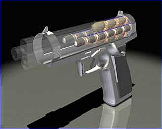 講原理就那複雜了,主要是「金屬風暴」是用全電子系統來控制子彈的發射,有別於現時用機械方式來撞擊子彈的鎗炮,所以在射擊速度上出現了飛躍性的突破。不過為著要連環射擊,所以子彈尺寸亦縮至平常的三份一。