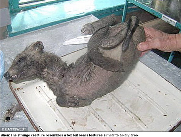 烏克蘭當地一名獵人,日前在前蘇聯共和國區域狩獵到一隻詭異的生物,牠有灰色的毛皮、很長的脖子、超短的前腳,外型就像狗與狐狸和袋鼠的綜合體,讓動物專家百思不得其解,只願同意「這是混血突變的生物」。當地人表示,近年該地區出現很多怪奇生物,懷疑與前蘇聯在此處秘密建立的活體實驗室有關。