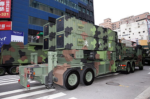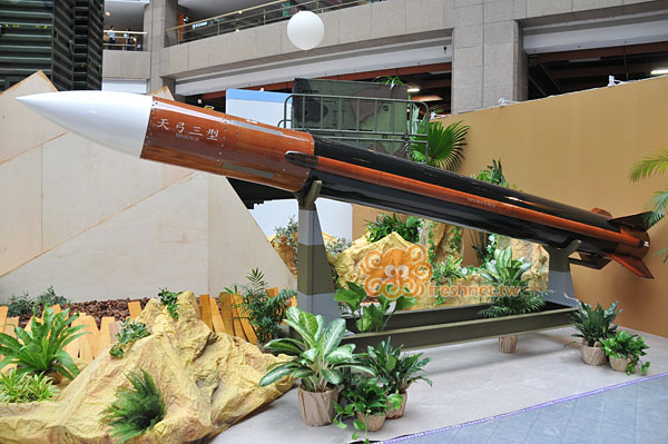 中華民國國軍自行研造武器又有新突破!國民黨立委林郁方5日在立院質詢時指出,共軍陸續有殲20、殲31等匿蹤戰機出現,而國軍由中科院自行研發的天弓三型防空飛彈近期已測試成功,這款飛彈具有攔截隱形戰機能力,國防部長高華柱答詢表示天弓三型飛彈將量產。