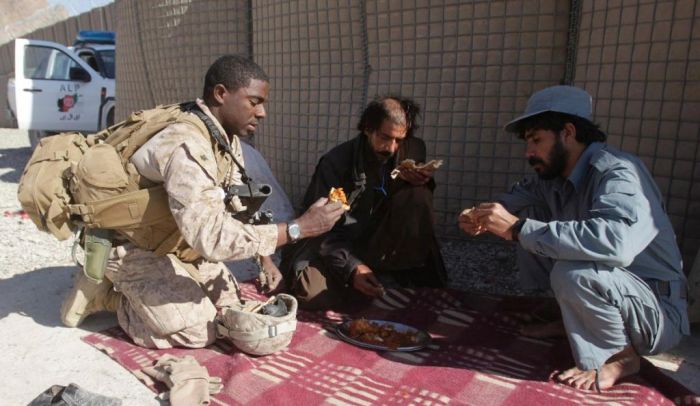 多國部隊在阿富汗與當地人以及阿富汗國民軍吃當地的特產食物