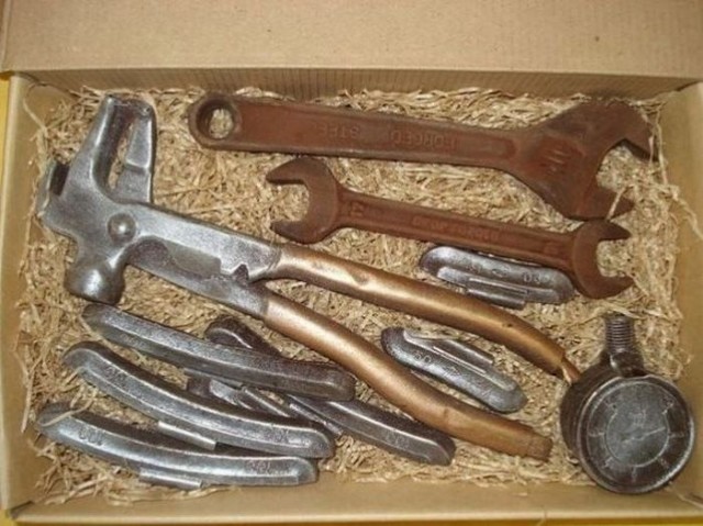 今天讓網友猜猜這到底是,為啥要送這些生鏽的金屬工具組合呢?
