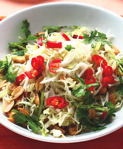 5.再撒上蒜花生及作法2的香菜段拌勻即可。