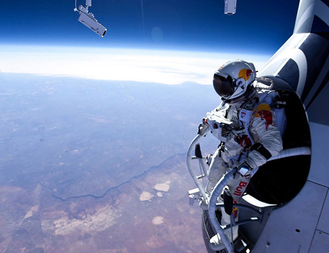 特技跳傘運動員Felix Baumgartner創下人類最高跳傘紀錄。