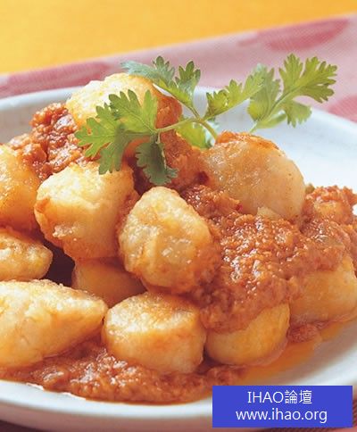 4.將炸好的干貝擺盤,把辣椰醬加熱後淋至干貝上即可。