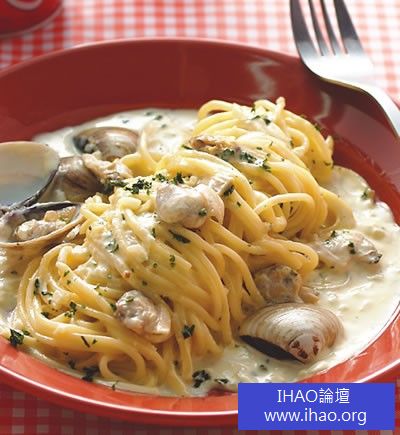 3.熱油鍋,炒香洋蔥碎加入動物性鮮奶油、調味料及作法2的蛤蜊,在蛤蜊都開口後,加入作法1的義大麵拌勻,最後撒上巴西里碎拌勻即可。