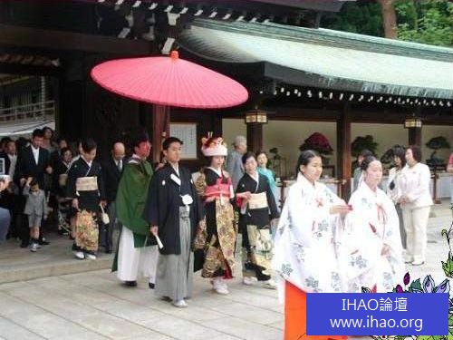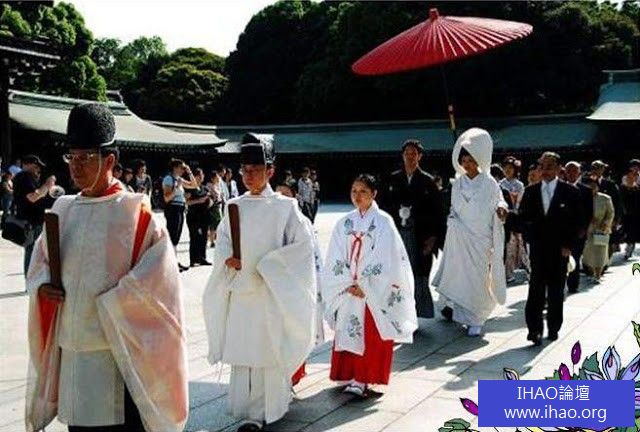 日本的新娘既不到男方的家裡,也不到教堂,而是要到神社去祈禱神靈,