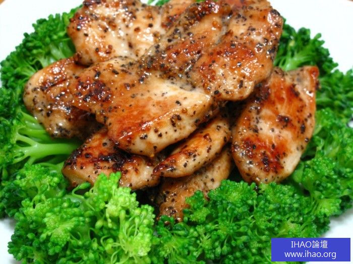 3放入適量的油,等油稍熱後放入雞胸肉片,煎至雞肉片兩面呈褐色,將花椰菜擺入盤中,雞肉片放入其中央