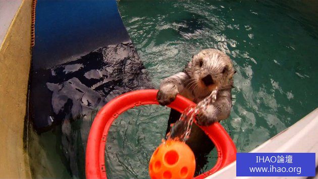 海獺出乎意料的越玩越好,甚至還能飛身灌籃,就算第一次不進,海獺也不會放棄,因為牠的生命就是因為不曾放棄,才有現在如此可愛的絕技。