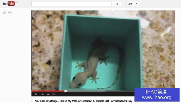 男友自拍影片,看起來想送給女友鑽戒當驚喜,但盒子打開一看,裡面是一隻活生生的蜥蜴。網路影片:「你真的要買Tiffany要送我?對啊,就在盒子裡,喔,我想你真的…,啊。」