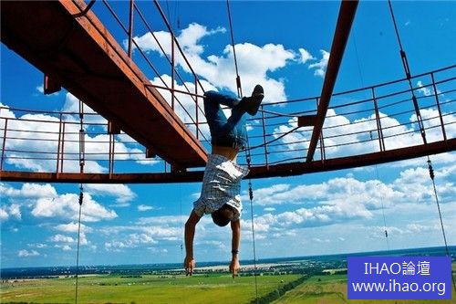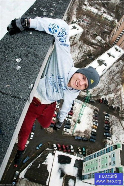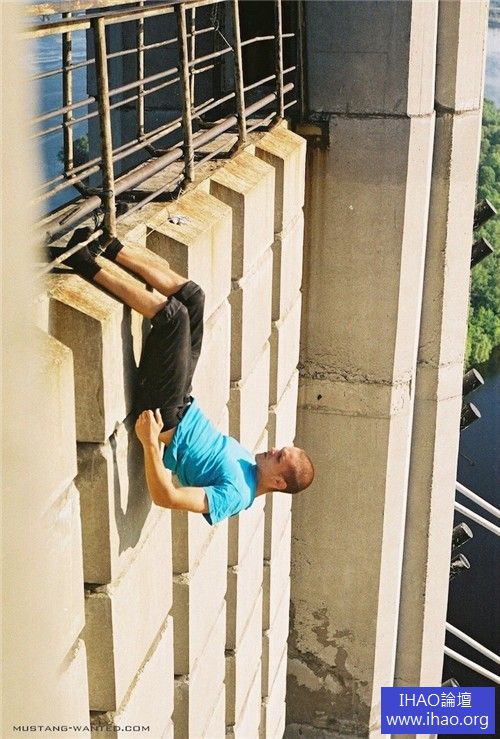 這是26歲的烏克蘭男生Mustang Wanted(估計是個藝名,哈哈)最近風靡全球的一組自拍照片——沒有任何裸露和暴力,但卻足以吸引眼球,因為,他在各種險之又險的高處、單手懸掛拍下的這些照片。