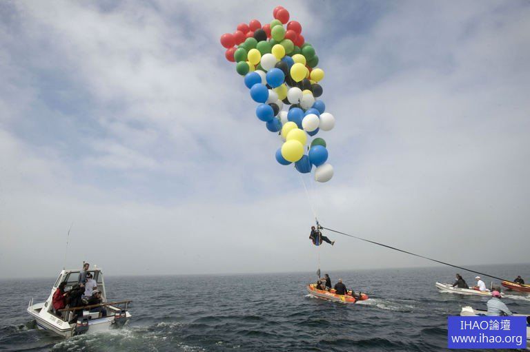 為募款 勇男靠氣球飄洋過海