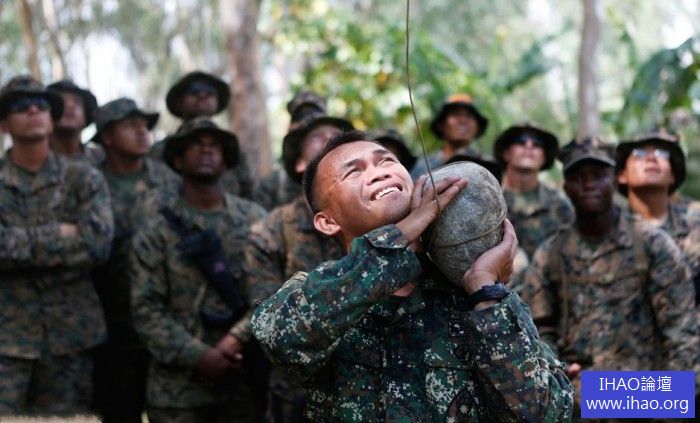 當地時間2013年4月8日,菲律賓打拉,美國海軍陸戰隊進行叢林生存訓練。