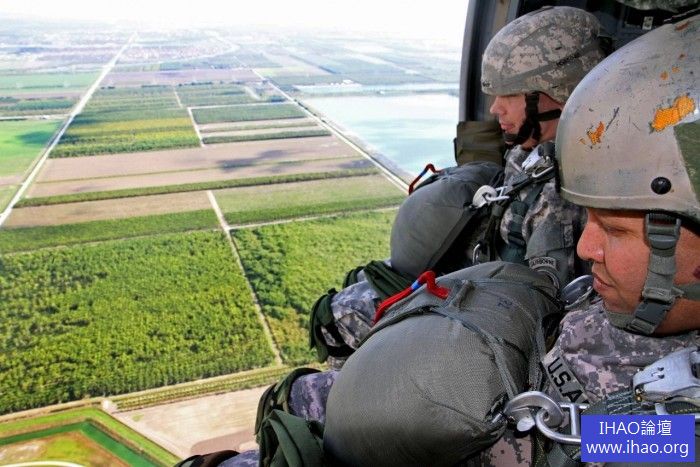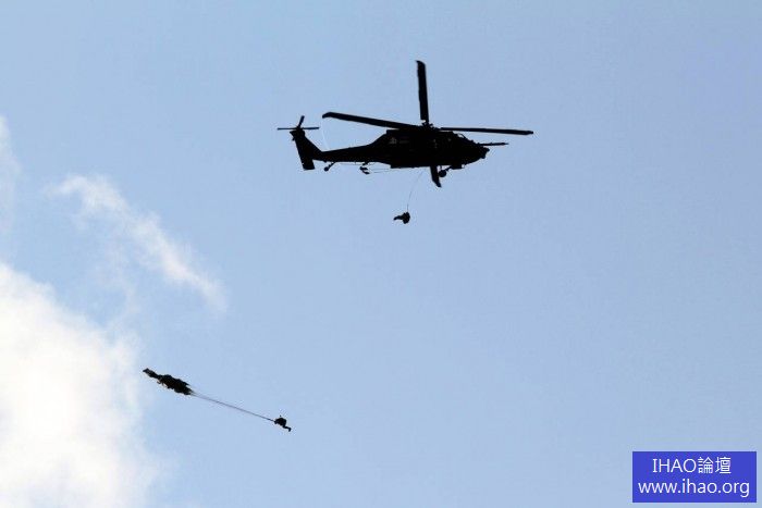 2013年4月16日美國陸軍在佛羅里達州進行直升機跳傘訓練