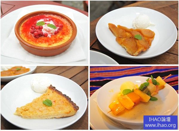 ▲紅醋栗焦糖布丁、蘋果派、檸檬塔、薑與肉桂醃漬水果串。(記者田欣雲攝影)