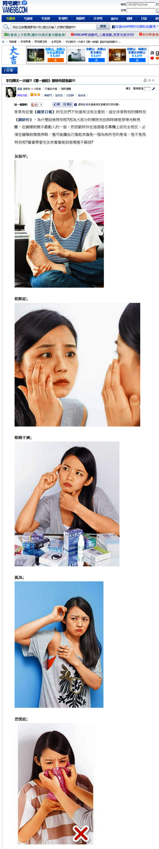 天天裝病也能裝出心得,模特兒界現在就多了「病模」,常常在報紙副刊醫藥版面出現的模特兒劉研伶,被部落客發現,這幾月來天天有她每天裝病,迅速竄紅。