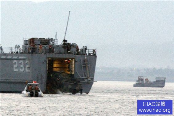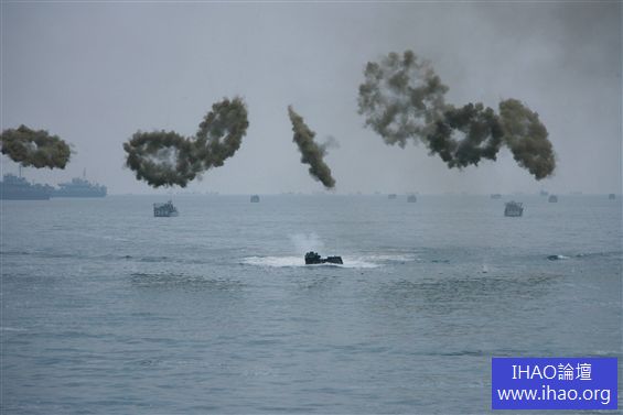緊接著,第四至第六舟波,則由海軍LCM機械登陸艇編成,搭載登陸部隊拖式飛彈車、刺針飛彈捍馬車及120迫砲車等輪型、履帶車輛實施登陸;第七舟波則由三艘海軍LCU通用登陸艇,搭載M60A3戰車、悍馬車、中型戰術輪車登陸。