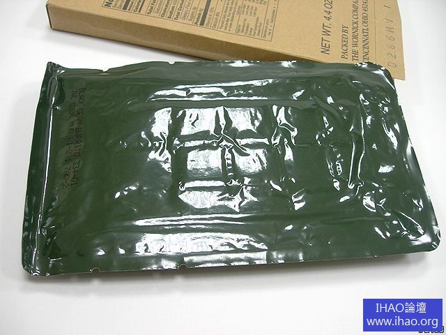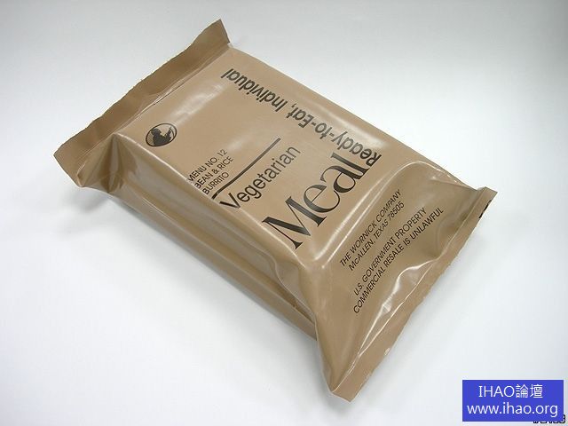 Wornick公司所生產的MRE菜單12號, 是素食...從標示看來是黑豆與米的捲餅,。