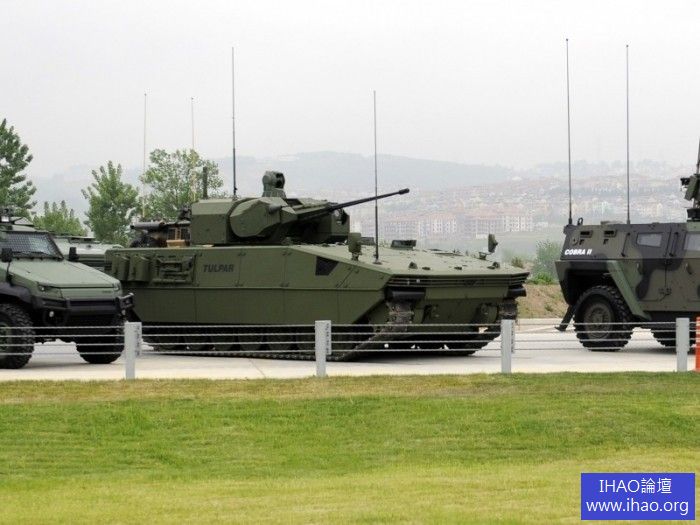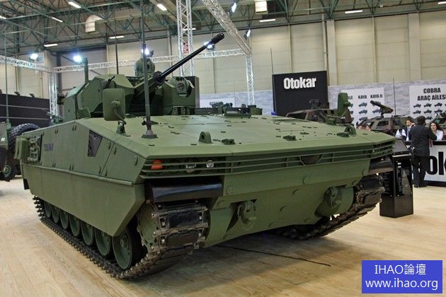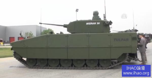 土耳其奧托卡地面系統公司在2013年土耳其國際防務展上首次展出了新型“圖爾帕爾”(Tulpar)履帶式步兵戰車。“圖爾帕爾”步兵戰車是按土耳其陸軍要求研製的,乘員2人,載員8人,重32t,最大戰鬥全重可達42t,可由A400M戰略運輸機空運;車長7.23m,車寬3.4m,車高(至炮塔頂)2.676m;最大行程600km,最大速度70km/h,採用輸出功率595kW的水冷15.71V8渦輪增壓柴油機。此次展出的“圖爾帕爾”步兵戰車裝備了奧托卡公司的Mizrak-30中型遙控炮塔。該炮塔裝有“毛瑟”Mk30-2型30mm雙向供彈機關炮和7.62mm並列機槍。該步兵戰車也可安裝Roketsan公司的L-Umtas遠端鐳射制導反坦克導彈。“圖爾帕爾”步兵戰車採用了機械傳動裝置和配有液壓減震器的扭杆懸掛裝置。該車可為車內乘員提供360°的態勢感知能力,並將核生化防護組件