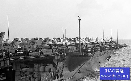 1970 年代初,越戰。VA-147 的一架A-7E 從星座號航母上彈射起飛