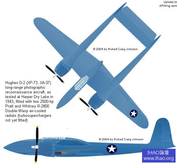 美國參戰後事情有了轉機,1942 年初休斯利用自己在美國政界的影響力向陸軍施壓要求迅速做出購買D-2 的決定,華盛頓陸航總部敦促裝備司令部採納休斯的建議。1942 年5 月25 日陸航與休斯公司簽訂了木製飛機的合同,1942 年6 月16 日陸航司令阿諾德中將命令萊特機場接收D-2 原型機進行試飛。此時軍方也沒有最終確定D-2 的軍事用途,在1942 年6 月的一個新聞公告中將該機稱為“XP-73”夜間戰鬥機,在另一個公告中又將其稱為“XA -37”攻擊機。實際上該機的內部彈艙並不能掛載足夠的炸彈成為有效的攻擊機,也缺乏足夠的機動性成為有效的戰鬥機,該機的優勢在與遠程和高速性能。