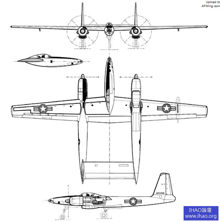 D-2 最初安裝是後三點式起落架,後改為前三點式,主起落架向後收入尾撐中,前起落架向前同時旋轉90度使機輪平放入機鼻內。發動機預定安裝兩台萊特公司的R-2160“龍捲風”液冷星形發動機。R-2160 是萊特設計的最後一種液冷發動機,6 排42 氣缸星形佈局,最大功率2,350 馬力。