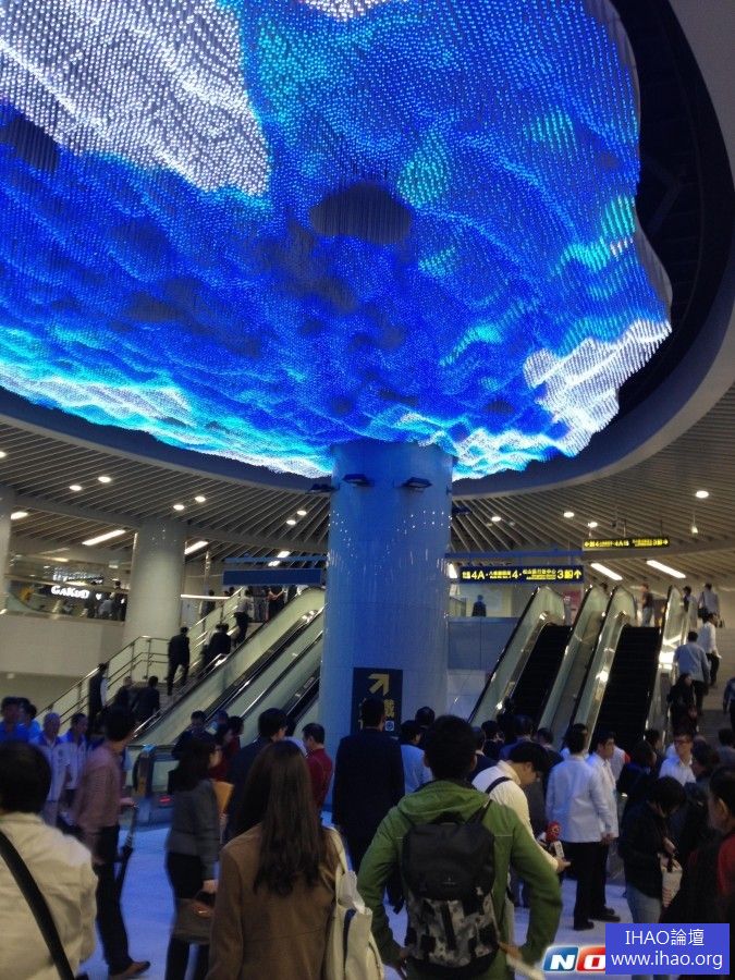 ▲大型公共藝術作品「域見」,透過50,250顆LED燈與不鏽鋼管垂直錯落出高低起伏的有機挑空造型。演繹出松山豐沛的歷史起源。(圖/簡佑庭攝)