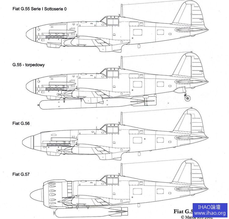 後來隨著G.57 項目的流產,意大利空軍對於SM.79 替代機型的需求不斷上漲,於是意大利工程師們再次擔負起將G.55 改裝成魚雷戰鬥機角色的任務。一架G.55(MM.91086)被改裝後能掛載一枚920 公斤,5.46 米長魚雷。它位於機腹下的發動機液冷散熱器被一分為二,以便在中間開出一個90cm 長的狹縫,在狹縫內安裝了兩個掛架,用於攜帶魚雷。同時延長了尾輪支柱並安裝了加固減震器,尾輪前方還增加了一個防護筒。去除兩挺布萊達-薩法特12.7mm 機槍被,只餘三門20mm 機關炮作為固定武備,飛機重量為2,600-4,100 公斤。