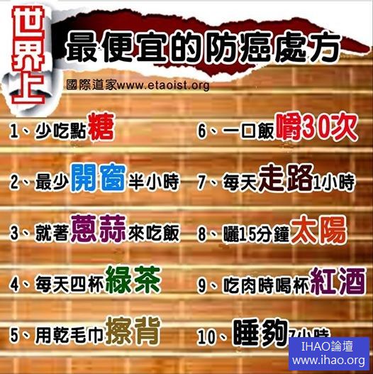 其中,包括龍井、碧螺春在內的綠茶效果最顯著,其防癌成分是其他茶葉的5倍。不過,茶水最好不要喝太濃太燙的,否則會影響其防癌效果。最佳飲茶溫度應該是60攝氏度左右,茶水浸泡5分鐘後,其中有效成分才能溶在水裡。