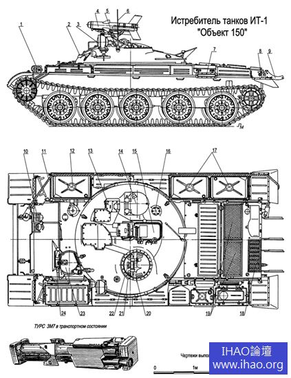 1964 年4 月,兩輛“ 150 工程”樣車被試制出來,並投入試驗運行。到1964 年底試射了94 枚 “龍”式飛彈,跑車試驗600 摩托小時,在測試中該飛彈表現出良好的可靠性(可靠性高達96.7% ),但同樣也暴露出很多缺點,譬如過於笨重的導引設備,其發射導引裝置重達570 公斤,落後於國際標準的電子元件,過大的射擊死區等等。但該飛彈的優異性能在實彈射擊中得以體現,在IT-1 測試中,靶標被設置為距離1250 米、2000 米和3000 米三種,坦克發射裝備被分成“靜對靜”“靜對動”和“動對動”三個狀態,坦克和目標的運動速度都設定為20 公里/ 小時。在“靜對靜”射擊時命中率高達98% ;“靜對動”狀態分別為97% 、88% 、64% ;“動對動”狀態分別為70% 、31% 、15% ,不要小看這3000 米15% 的命中率,要知道在60 年代初,普通的主戰坦克在3000 米交戰距離上的命中率幾乎為0 。該設計試驗階段在1965 年完成,同年5 月,“龍”式火箭坦克被正式命名為IT-1 型殲擊坦克(IT 是俄語истребитель танков的縮寫,意即“坦克殲擊車”),又經過長達三年的試驗和改進,1968 年9 月3 日,蘇聯部長會議正式批准IT-1 “龍”式殲擊坦克定型,計劃安排1968 年至1970 年度進行小規模生產並裝備部隊試用,僅在1970 年,伊日夫斯克工廠就生產了2000 枚3M7 飛彈,烏拉爾車輛廠生產了20 輛IT-1 殲擊坦克車體。