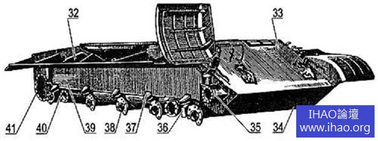 33 、車體首上裝甲 38 、扭桿支架平衡器