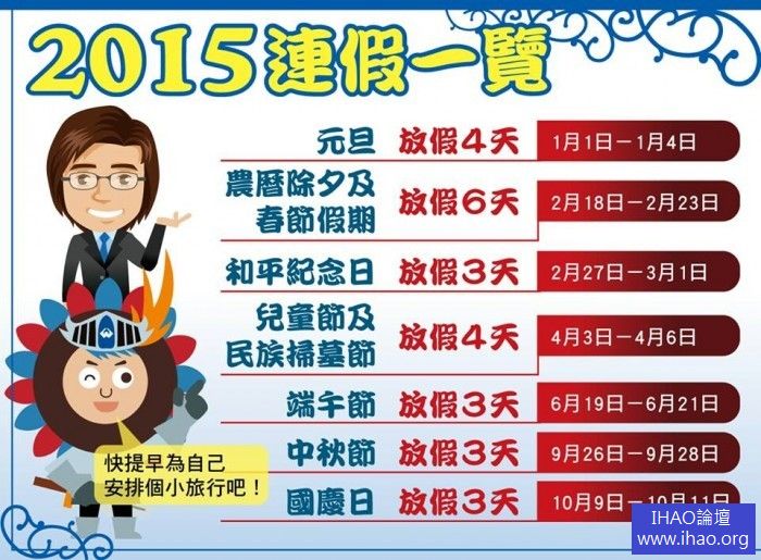 提供大家2015連假資訊給大家,是不是有很多人已經開始進行旅遊規劃了呢?