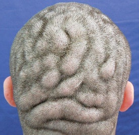 巴西一名21歲的男子得了一種相當罕見的疾病,他的頭皮並非像一般人一樣是平整的,而是莫名長出一層一層像是大腦外露般的皺褶。所幸這種疾病目前並沒有對他造成明顯影響,也不會造成智力衰退,這名男子對於頭皮特殊皺褶也感到相當自豪。