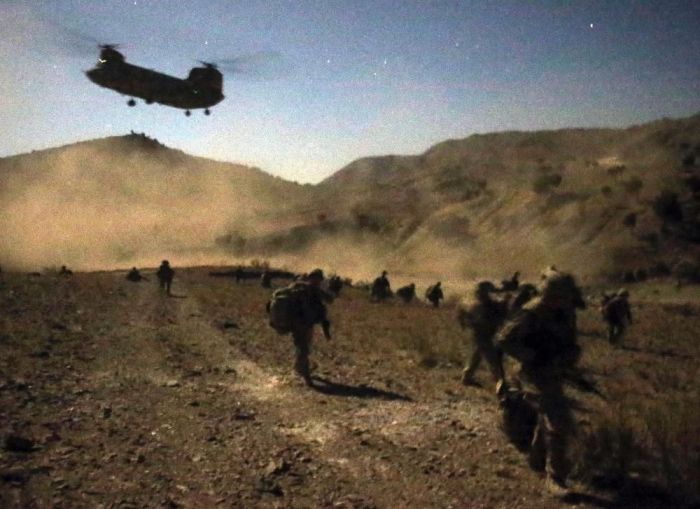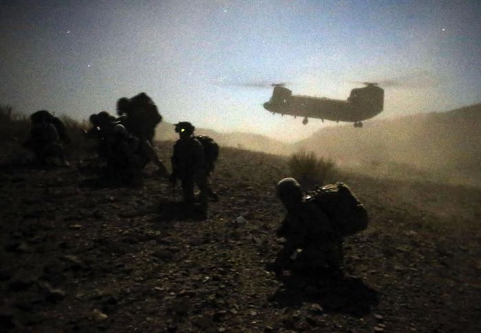 2012年11月2日,駐阿美軍一支戰鬥分隊與阿富汗友軍在帕克提卡省山區執行戰鬥任務。為了防止塔利班武裝獲得情報,兩軍部隊在夜間出動,由CH-47契努克直升機運送到山區,再步行到前進隱蔽區休息。11月份的天氣已臨近冬季,美阿聯軍又只能在露天宿營很是艱苦。