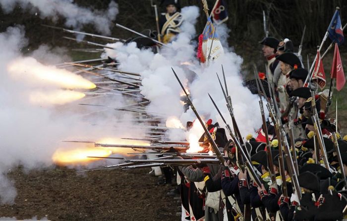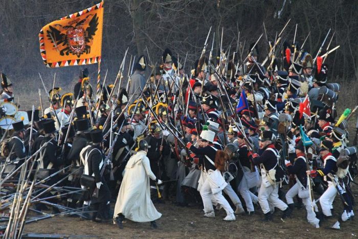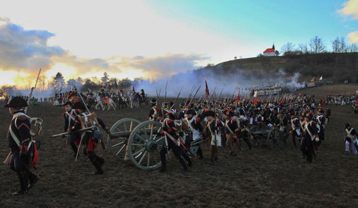 這場戰役因歐洲三個大國的皇帝奧皇弗朗茨二世、沙皇亞歷山大一世、法蘭西第一帝國皇帝拿破崙全部親臨戰場,又稱「三皇會戰」。