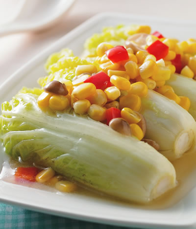1.娃娃菜洗淨,放入沸水中汆燙至熟,取出瀝乾盛盤備用。