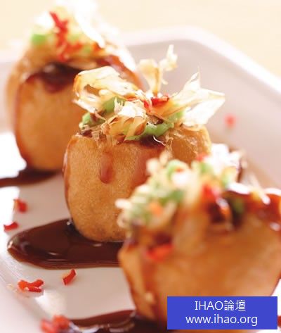 3.將作法2的炸豆腐表面剪開一個洞,塞入柴魚片盛盤。